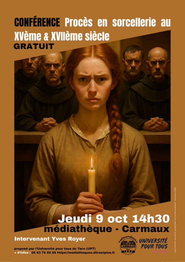 - Jeudi 09 octobre 2025 à 14h30 Procès en sorcellerie au XVème et XVIIème siècles par Yves Royer professeur (retraité) d'histoire et d'histoire des arts.