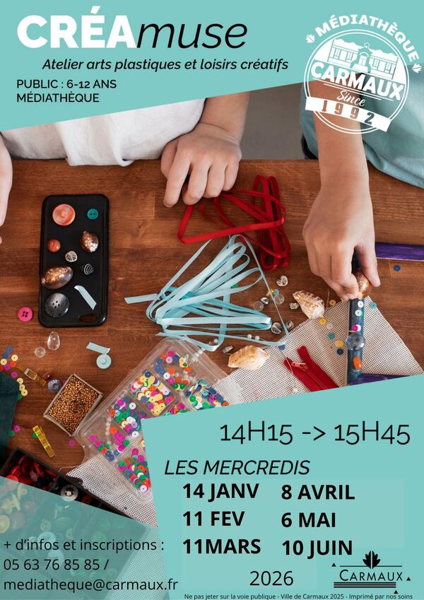 Inscription : 05 63 76 85 85 ou mediatheque@carmaux.fr