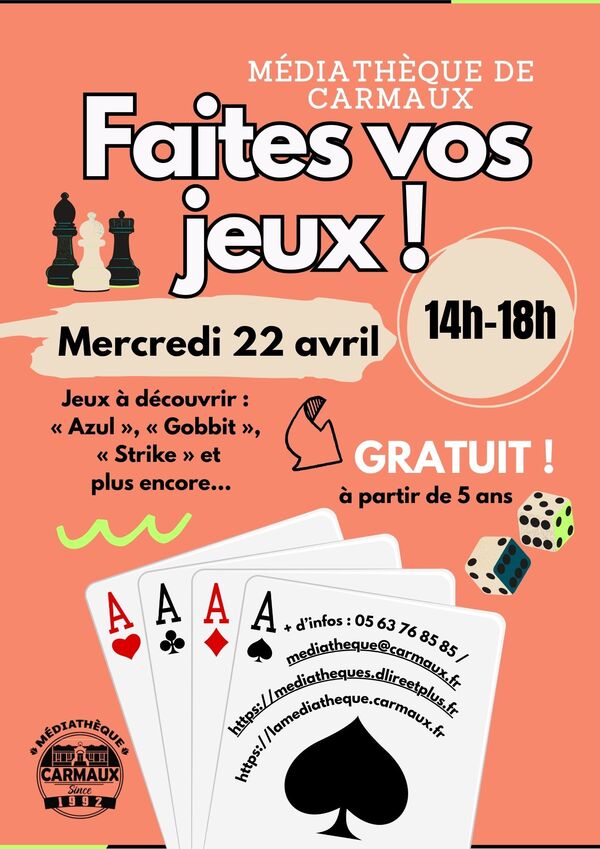 + d’infos : 05 63 76 85 85 / mediatheque@carmaux.fr