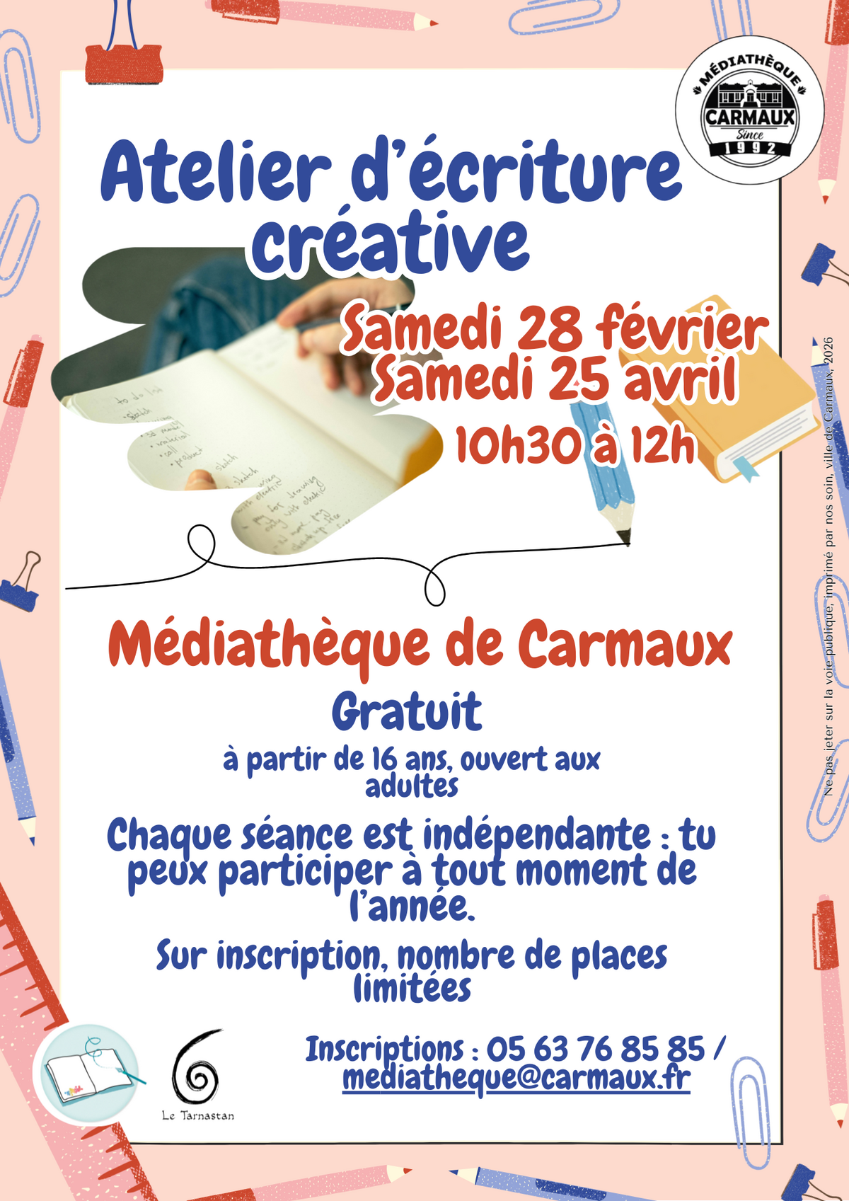 Inscription : 05 63 76 85 85 / mediatheque@carmaux.fr